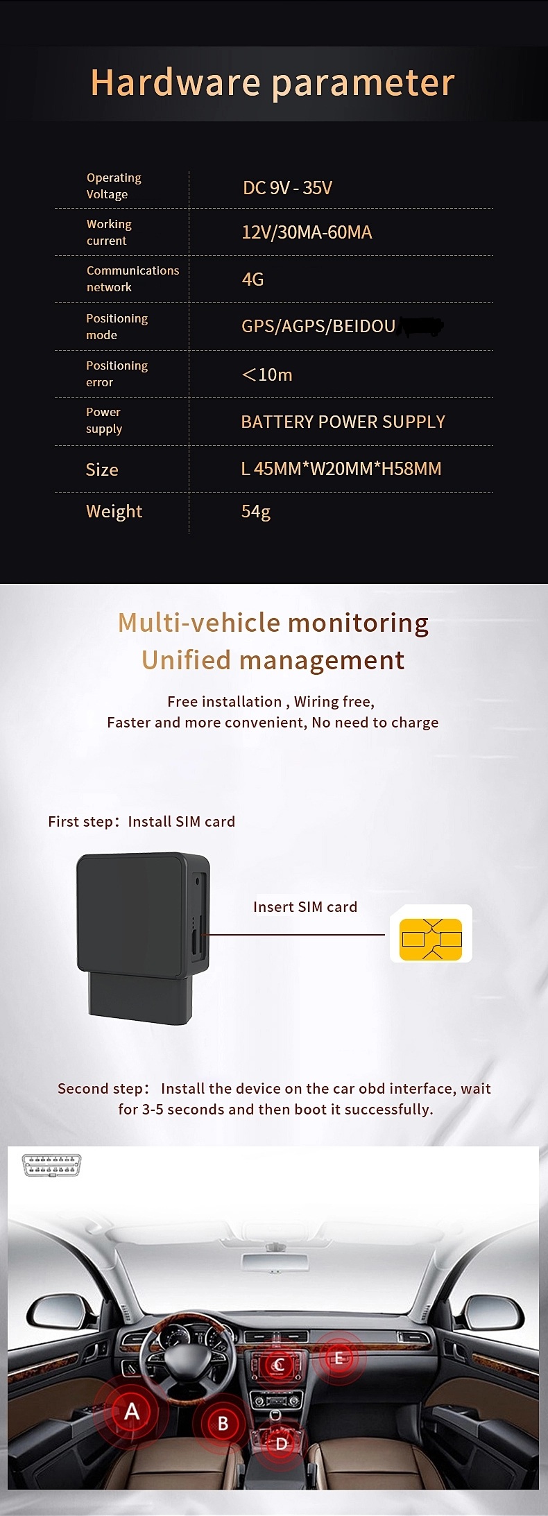 4G OBD GPS Tracker With DTC OBD Data Detection