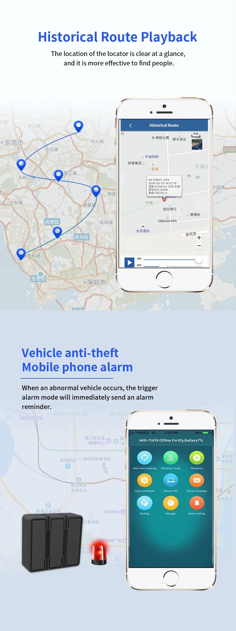 *2. Functions: voice control recording, remote pickup, overspeed alarm, displacement alarm, vibration alarm, low battery alarm, etc.