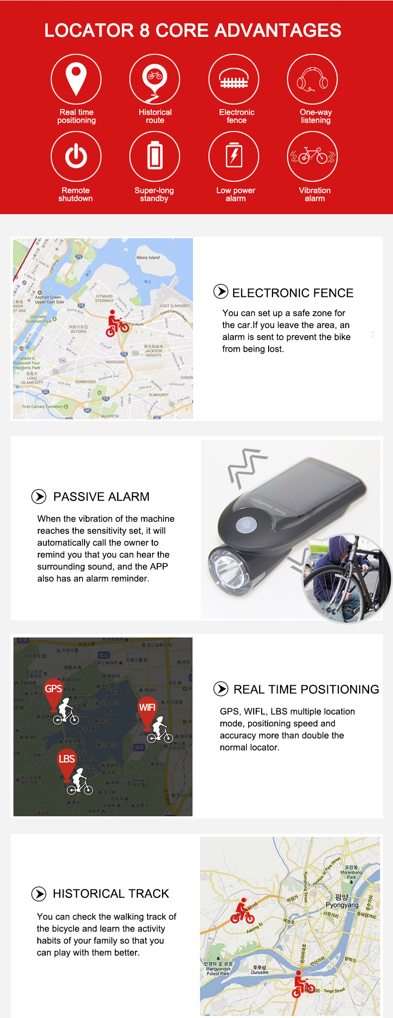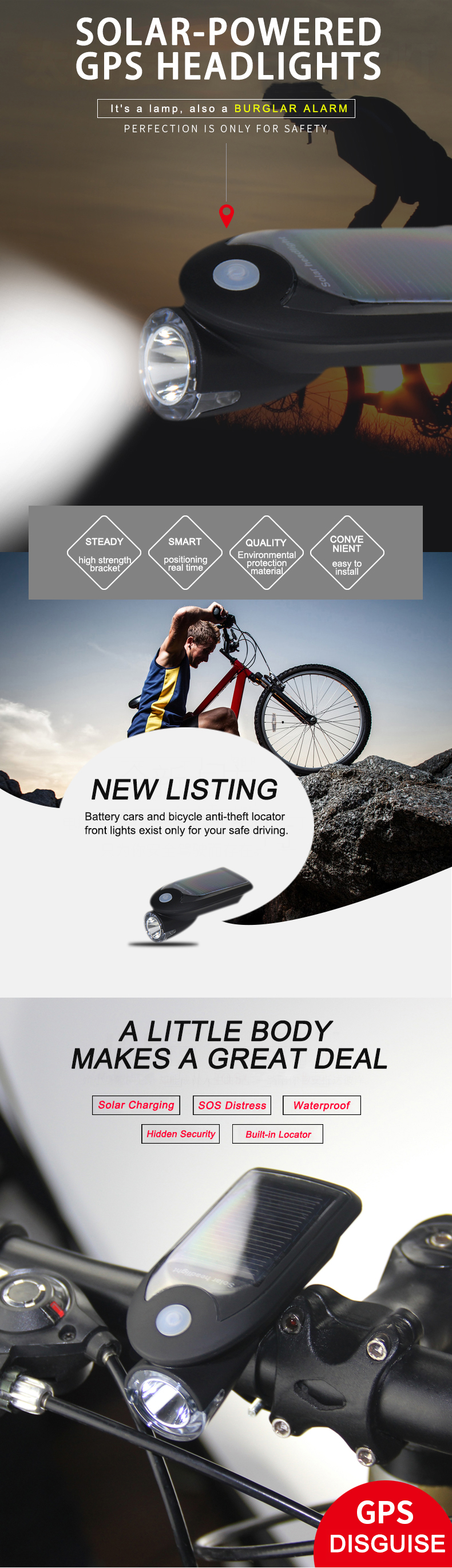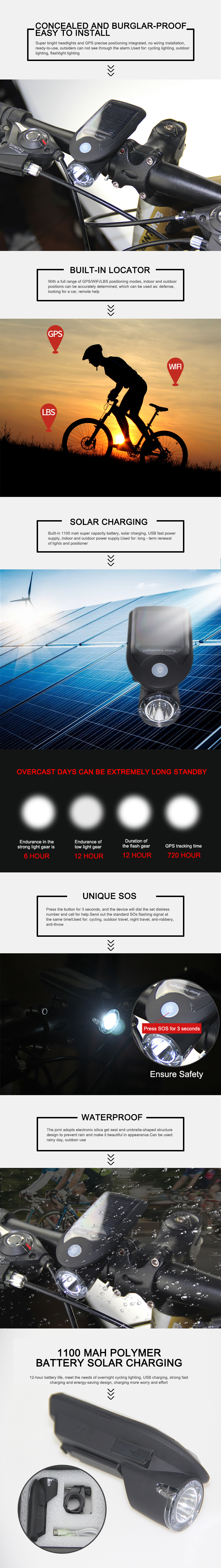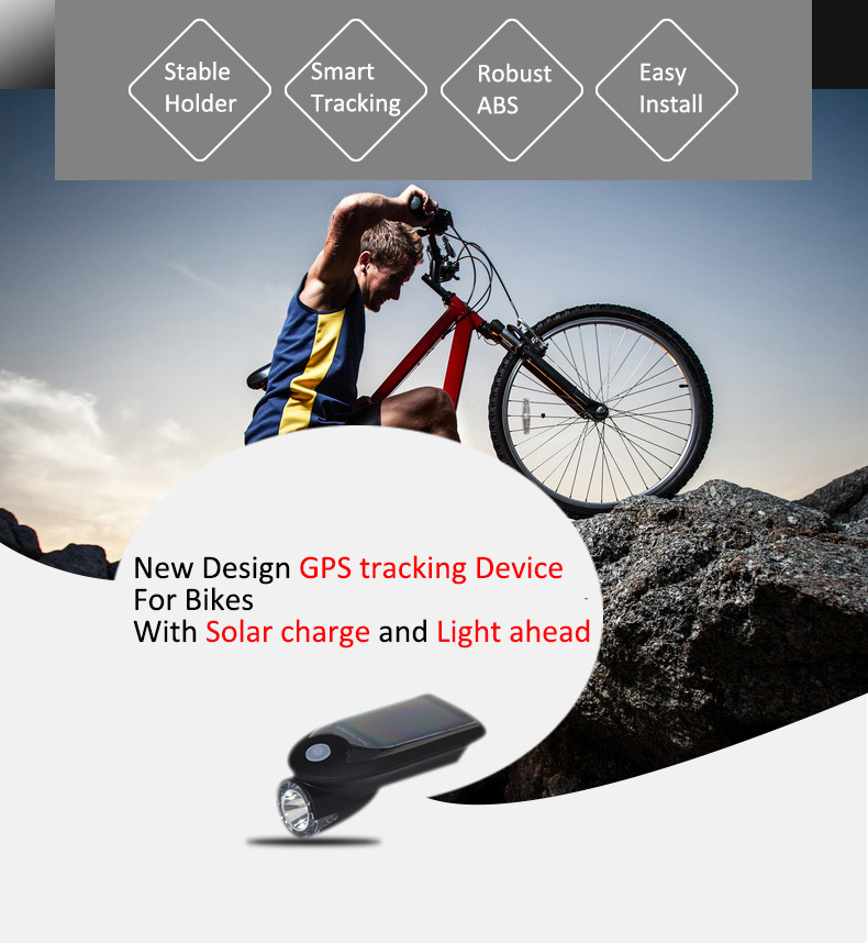 Waterproof Solar Bicycle GPS Tracker With Flashlight
