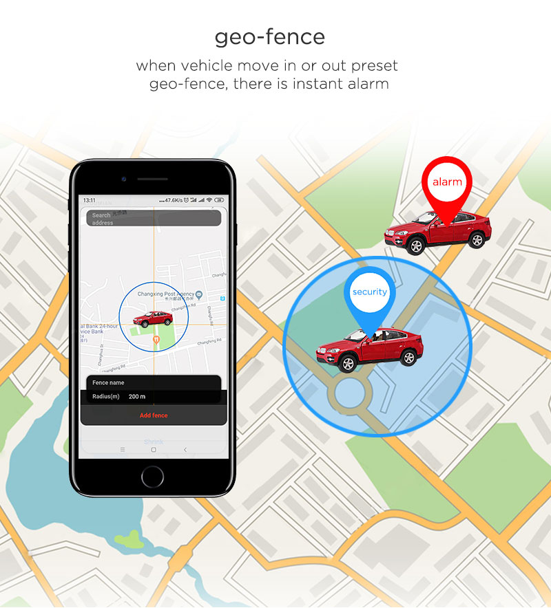 1. Real time tracking,vibration alarm, movement alarm, overspeed alarm,Power failure alarm,GEO-Fence,Historical Route Playback;